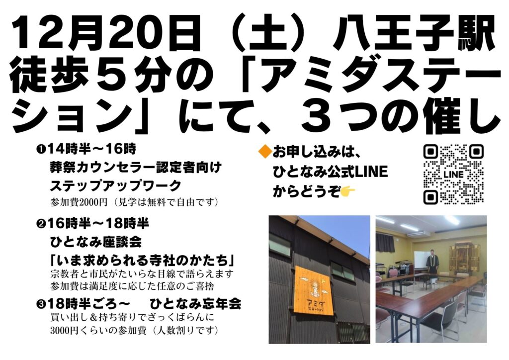修了後は現地にて、ひとなみ忘年会も開催します(忘年会参加のかたは、上記のご喜捨3000円以上にてお願いします)。