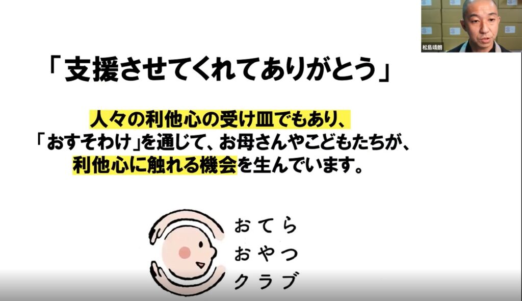 「子どもたちやお母さんたちが〝助けて〟と声をあげてくださることで、利他心にふれる機会を生み出してくれている」